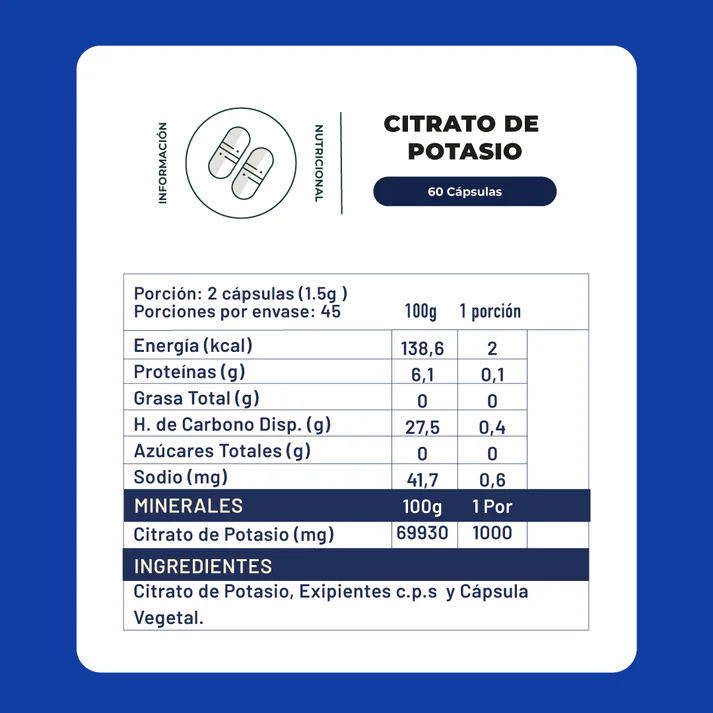 Citrato De Potasio 60 Capsulas 750 Mg