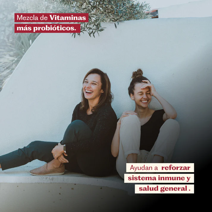 Las vitaminas C y D, junto con los probióticos, fortalecen el sistema inmunológico, lo que ayuda al cuerpo a combatir enfermedades y mantenerse saludable. Esto es especialmente importante para la prevención de resfriados, gripes y otras enfermedades infecciosas.