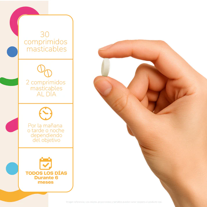 Comprimidos masticables, fáciles de consumir y adecuados para el uso diario.